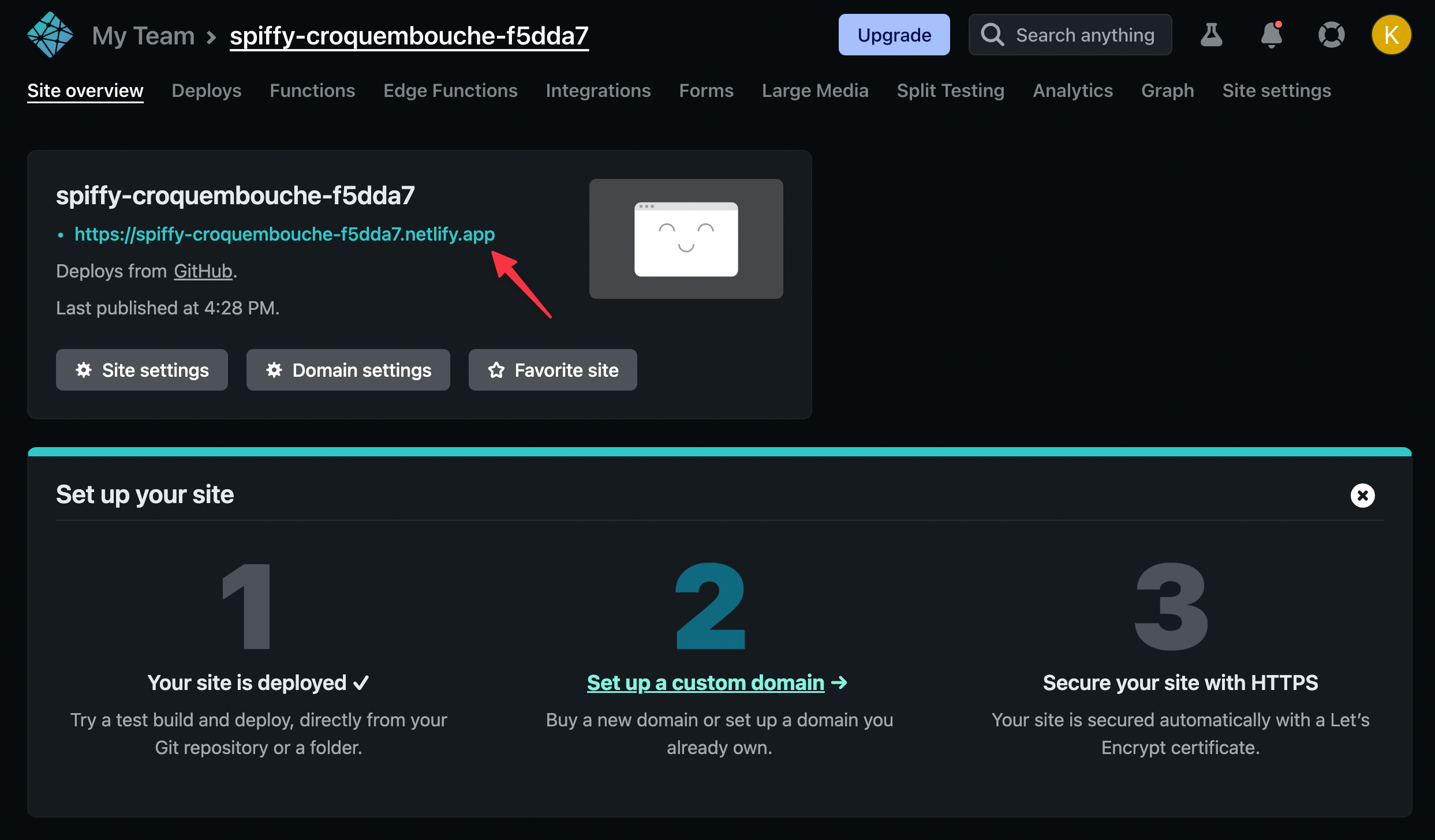 From now on, each push to main branch will cause redeploy of the Netlify website. You may want to go to the "Site settings" tab to update your site name or even set up your domain.